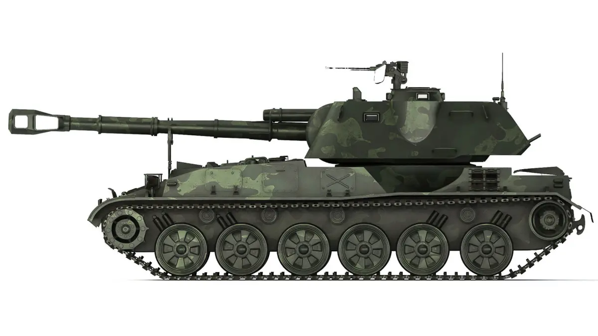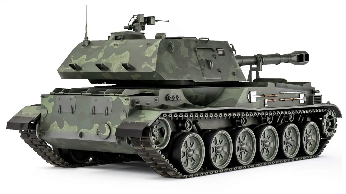 2S3 Akatsia (GABTU index - Object 303) - Soviet 152-mm divisional self-propelled howitzer. The main elements are prepared for TurboSmooth smoothing (2 iterations). Elements of the hull, weapons, and tracks have been worked out.