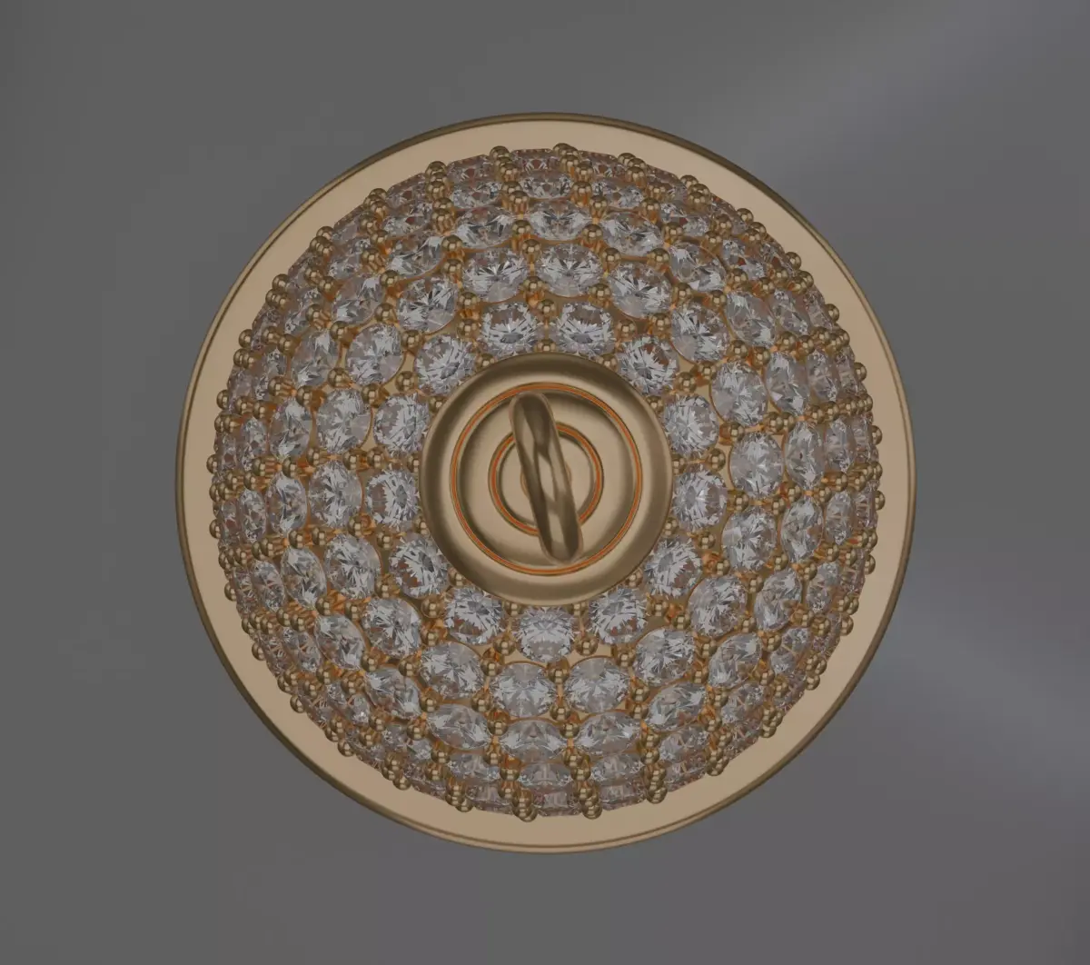 I am proud to present my latest creation — a highly detailed 3D model of a luxury jewelry pendant, designed with meticulous attention to detail and realism. The pendant features a warm-toned polished gold base, intricately encrusted with rows of multi-faceted gemstones that display lifelike brilliance and sparkling reflections.