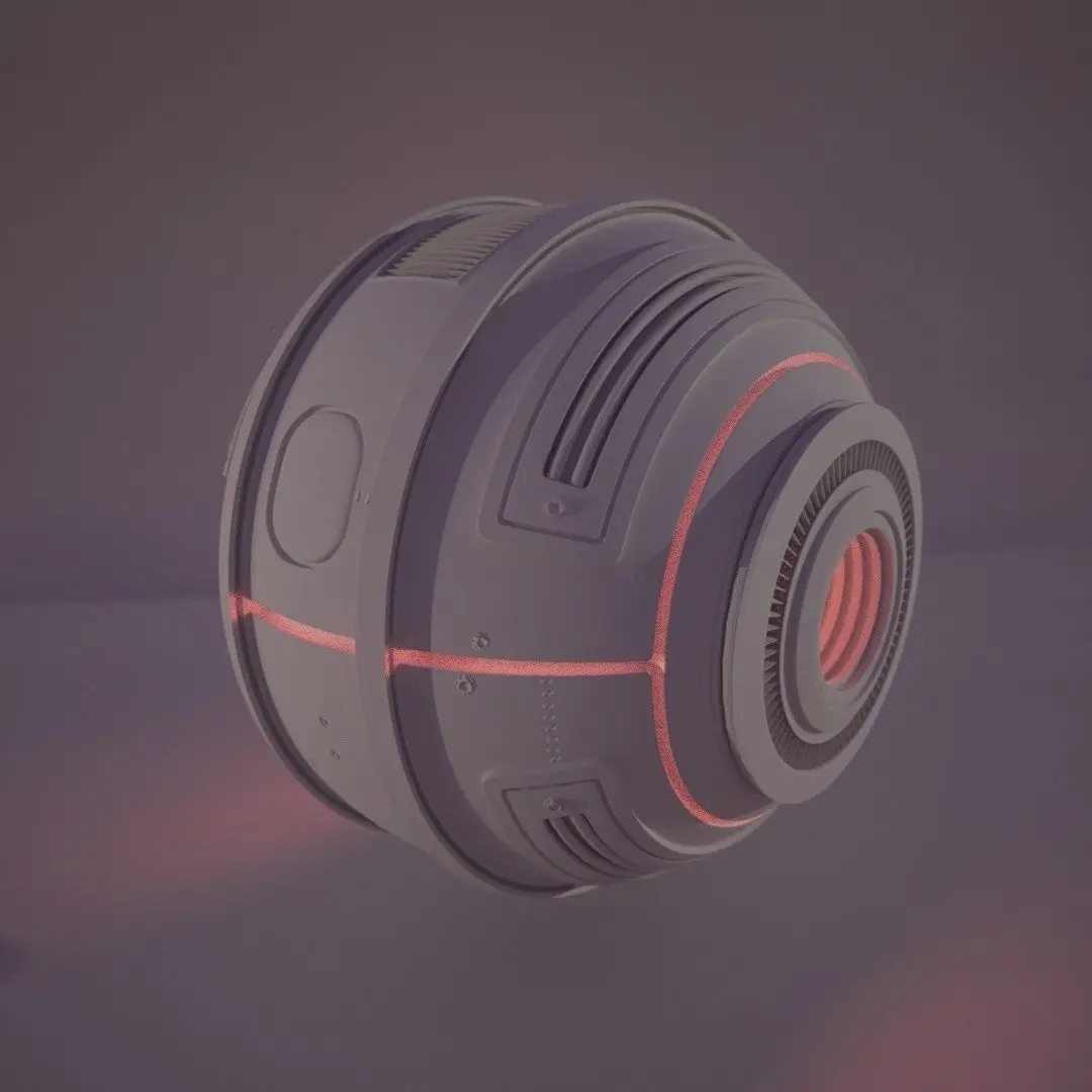 A spherical drone, includes very detailled hi-res 4K textures created in substance painter. can easilly be scaled and decimated. the model is High poly and ideal for special effects. I can provide the substance painter smart material if requested. most of the painted details are on the main body of the drone.