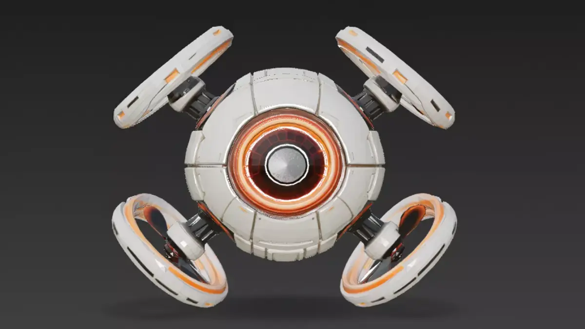 The spherical design gives the drone a unique visual identity while maintaining a believable functional look. It can be used as a flying scout unit, autonomous security drone, or background tech prop in games and animations.