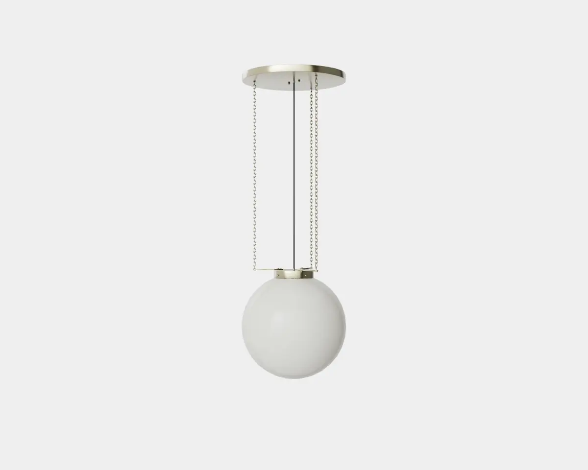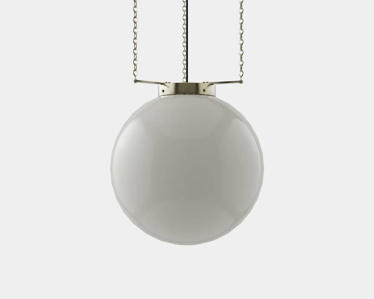 The 3D model was created on real base. Nickel-plated brass mount with white opalescent glass shade, 40 cm diameter. ME 104 ceiling light made in 1926, design by Marianne Brandt.