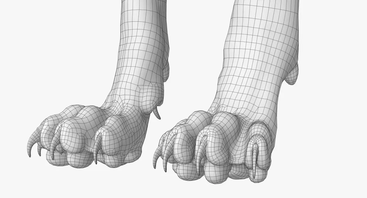 Claws, eyes, gum, teeth and tongue are separated meshes.