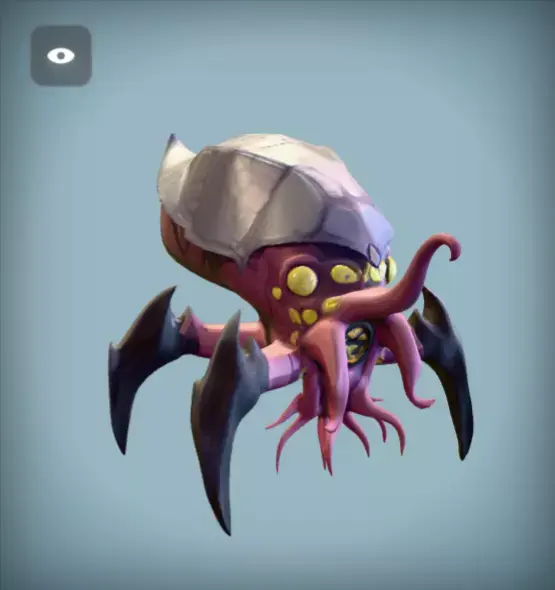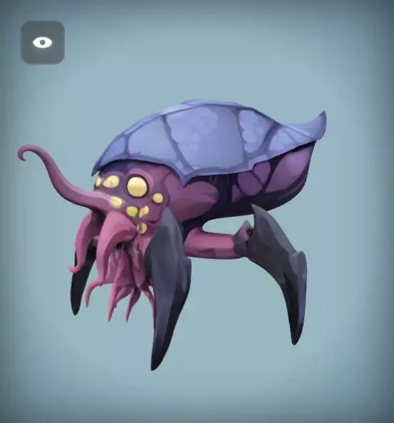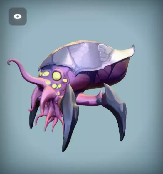 Its eerie bioluminescent eyes and razor-sharp limbs make it an unpredictable and formidable entity, capable of lurking in alien landscapes, deep-space derelicts, or abyssal depths. The combination of organic and armored textures gives it a truly unique and unsettling presence.