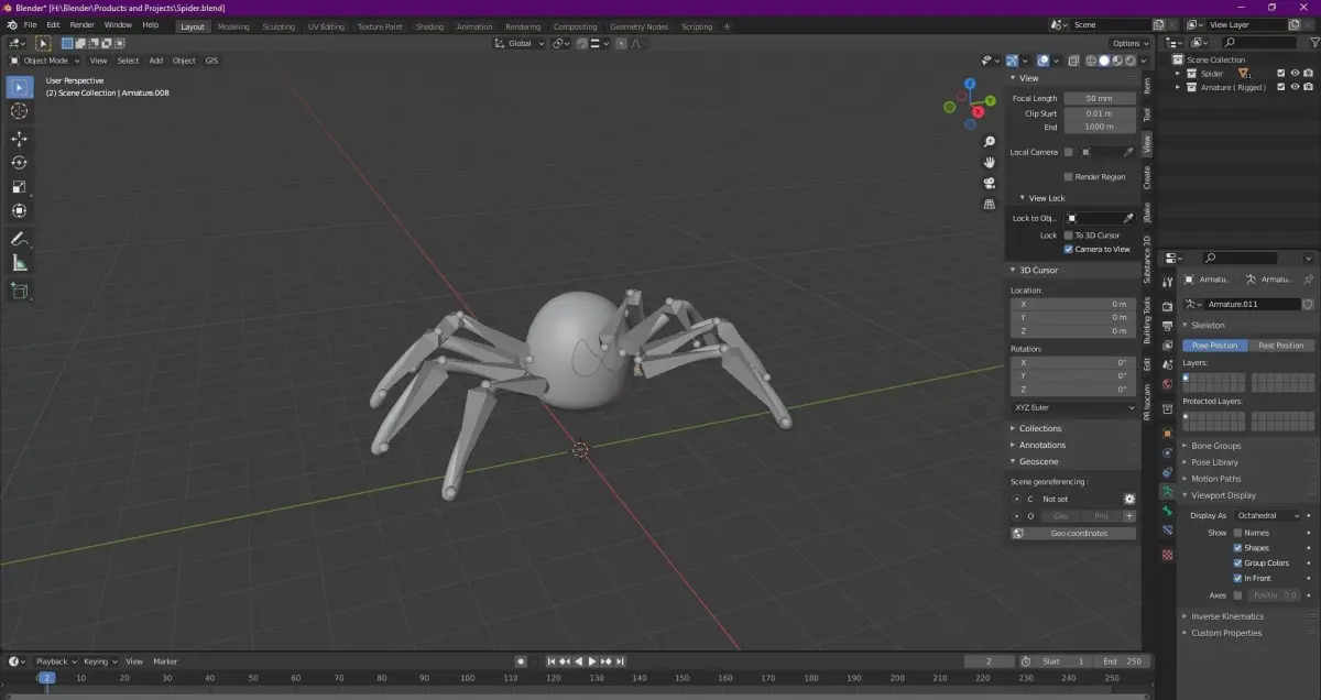 This's a model of a cartoon ( stylized ) spooky spider.Detail:Collection : 2 ( Spider and Amature )Shape : 11 ( 4 right legs, 4 left legs, 2 eyes, 1 head )Amature : 8 ( 4 right/ left legs )Rigged : YesMaterial : 3Texture : 0Subdivision Level 1 ( except 2 eyes at lvl 2, you can't downgrade it to lvl 1, it'll make trouble )Files format:(Native) .blend.mtl.obj.fbx.glb.stl.usdc.ply.dae.abc