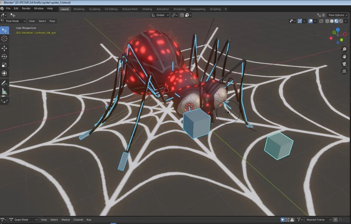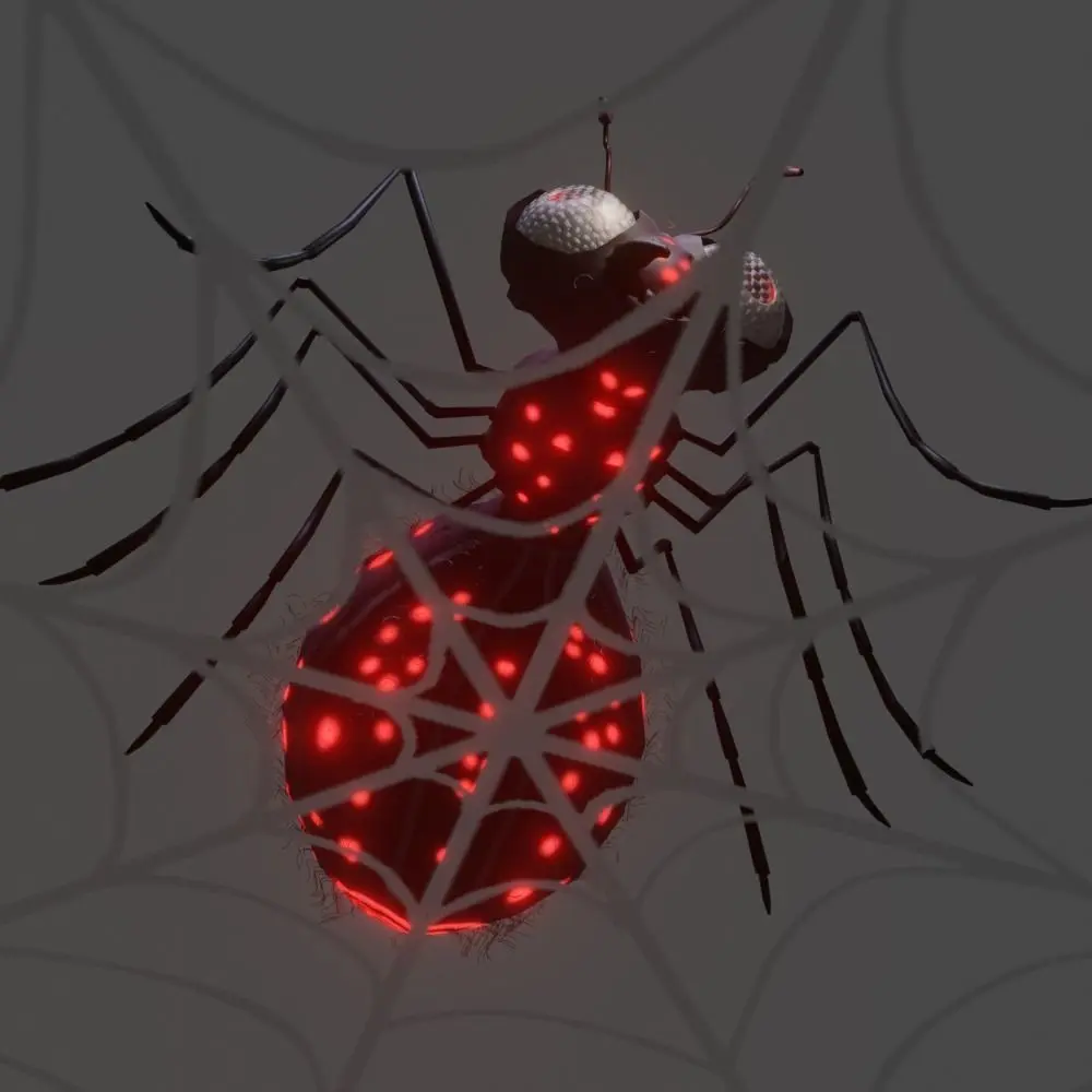 3d model maded in Blender 2.81rigged and animatedbone controler to the legsparticle system for hair + converted to a mesh and rigged for sceleton2 diffuse texturesone emmission texture