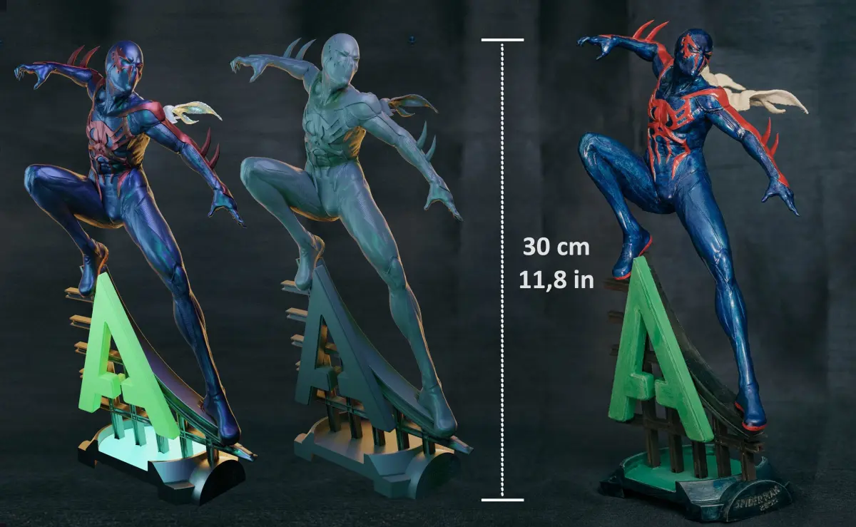 Spider-Man 2099 Statue for 3D printing. Already sliced and keyed, It comes both in pre-supported STLs version and OBJs without supports.