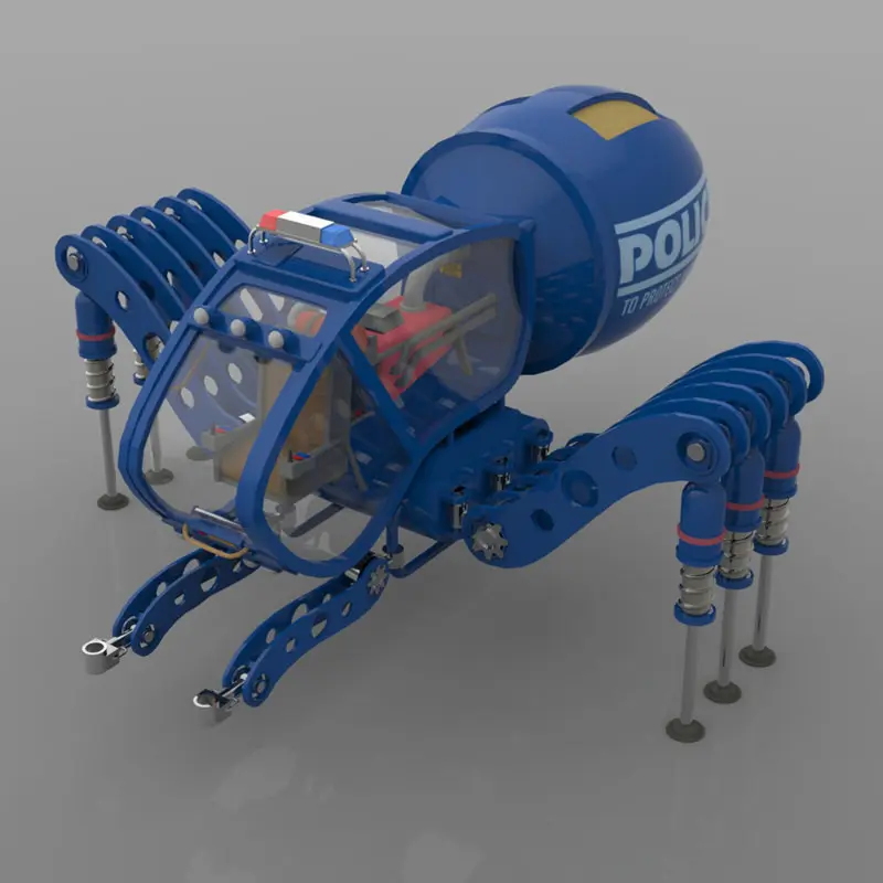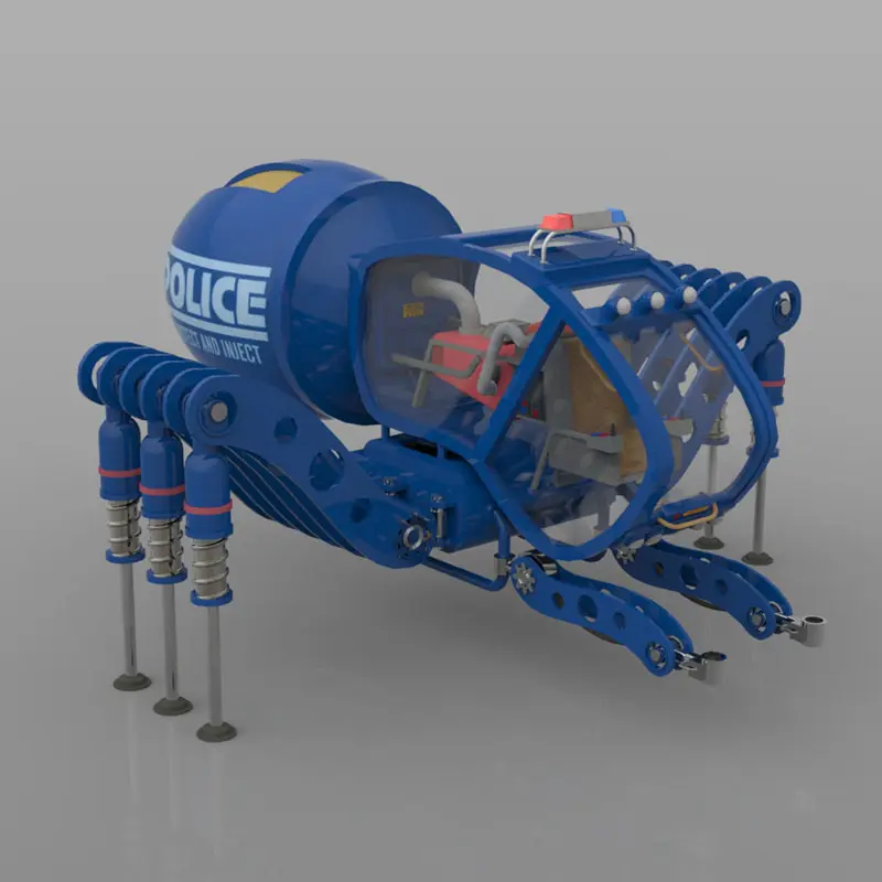 Which also means the SpiderMex is incredibly flexible in terms of the poses that can be quickly created for your 3d scenes. From bunching up all legs for ease of transportation, to partially extending the leg parts to easily stand on unlevelled terrain, or fully extending all the legs.