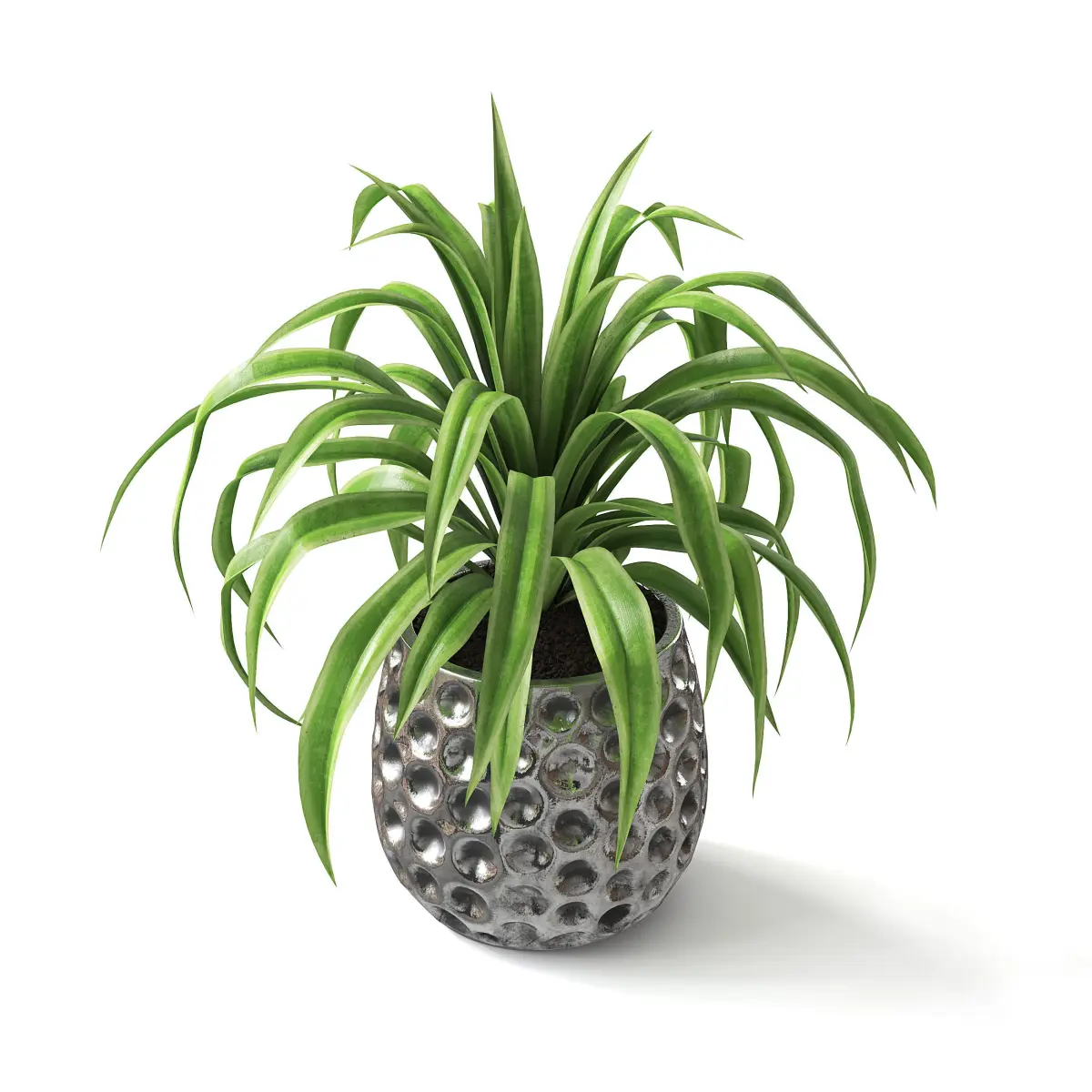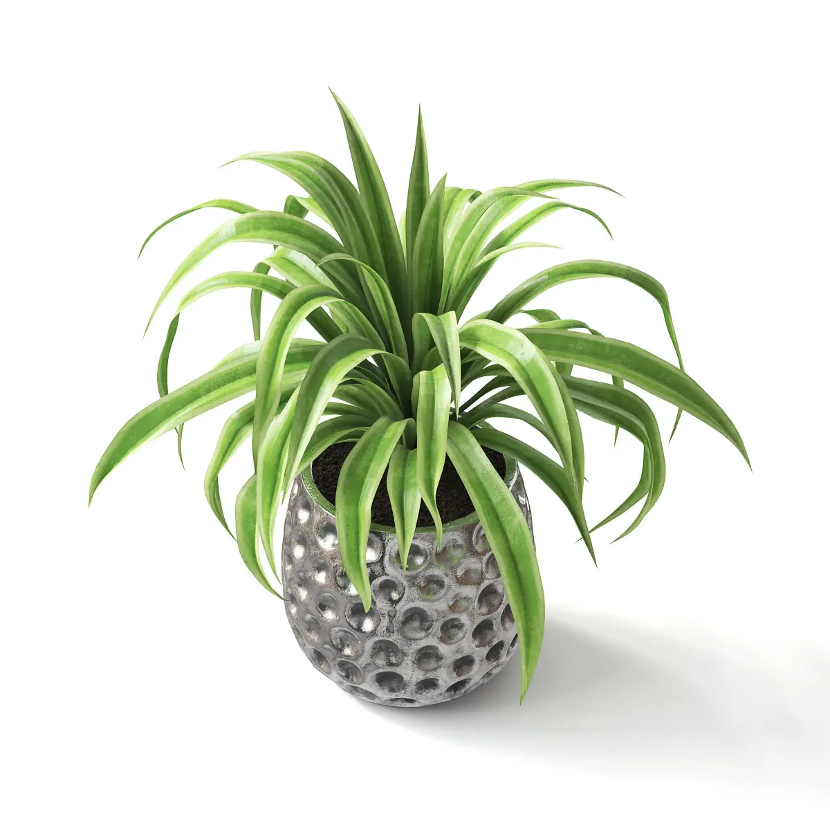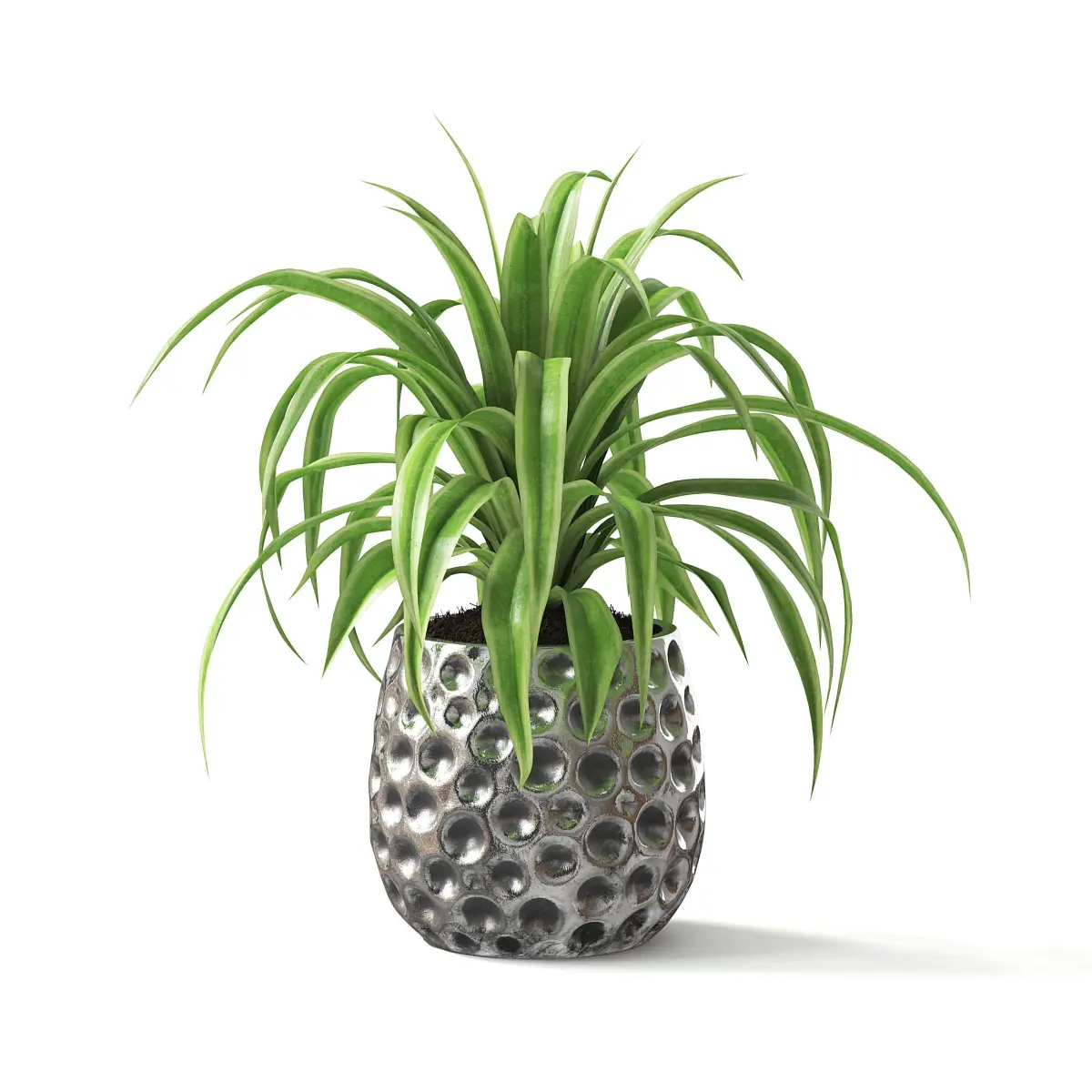 Spider plant in metal pot.