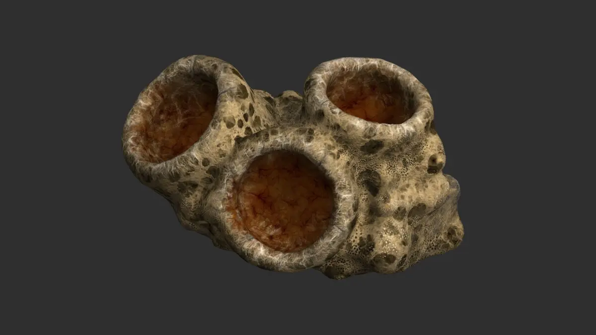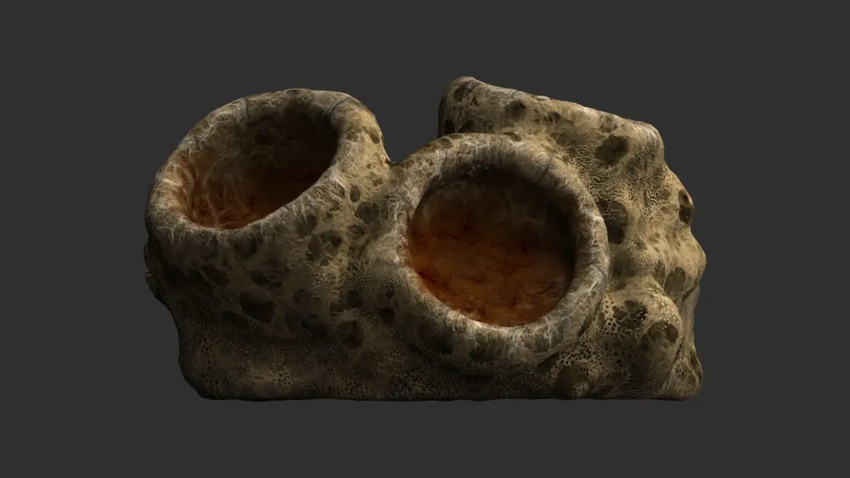 A Spider-infested rock with 2k textures in .png format. Textures have Diffuse, Specular, Height, and Normal maps.