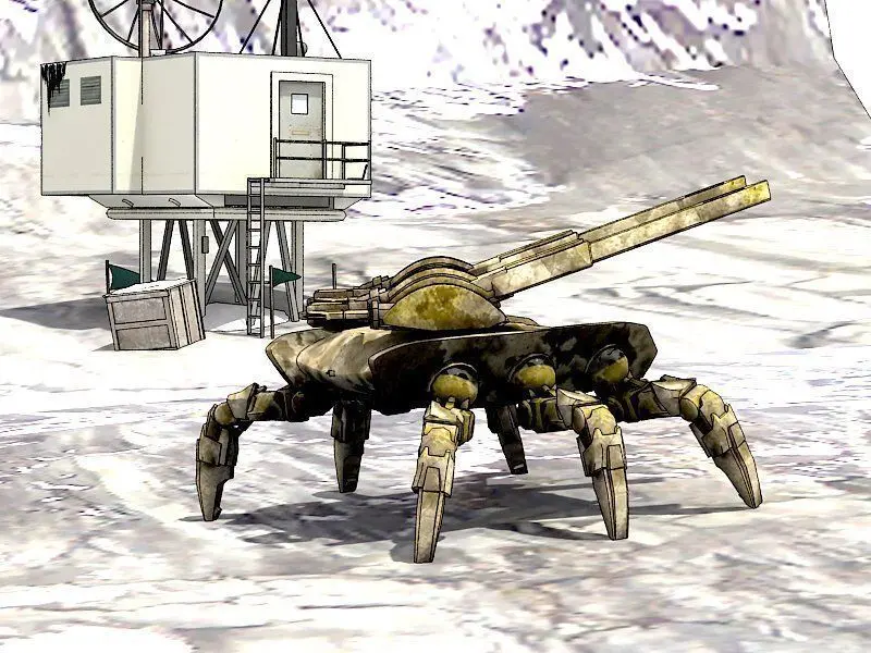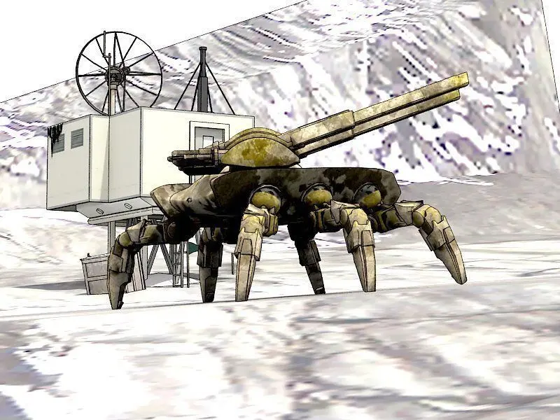 This is a futuristic robot sentry.Armed with two cannons, this spider tank can dominate the battlefield... or when shrunk down, it can infiltrate enemy bases with ease.