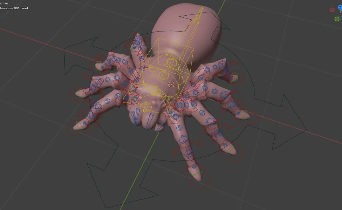 The rigged project with controllers in Blender and exported only with the Rig deformer is attached, it has Idle cycle animationSpider dance lookdevsculpt - zbrush,retopology - mayatexturing - substance painter,rigging, animation, render - blender cyles