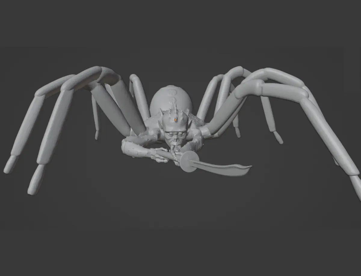 This is a depiction of a hybrid human-spider warrior, similar to a Choldrith