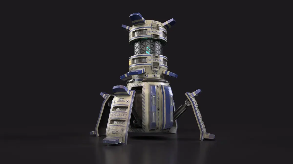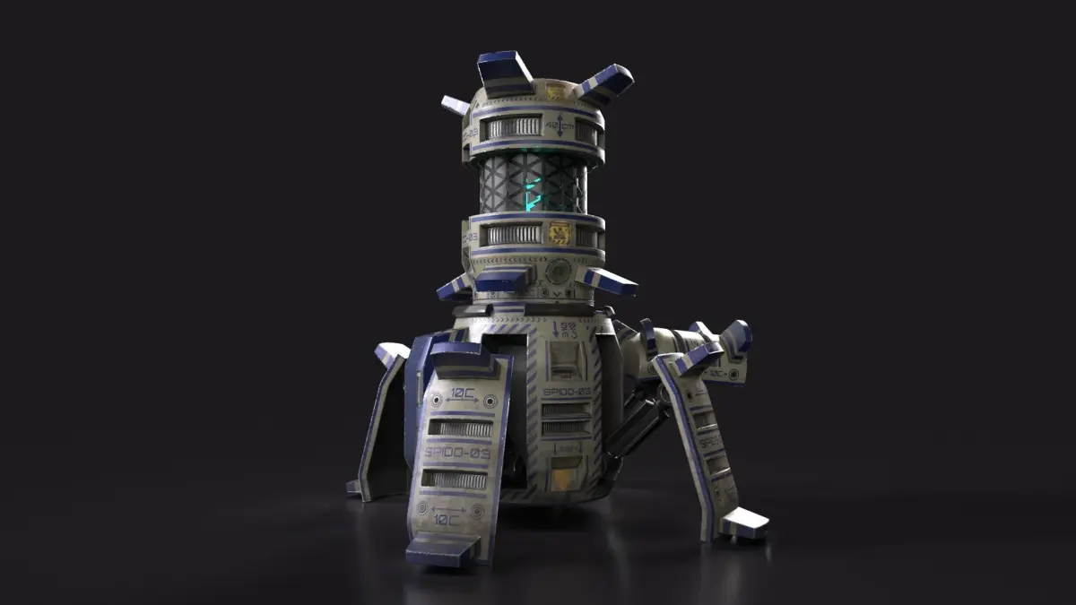 SPIDO-03 was designed in 2042 as a multi-purpose, autonomous, intelligent robot. The name 'SPIDO' is derived from its spider-like appearance with a massive body and four legs. Speaking of its body, this model is equipped with a tiny fusion reactor (OrionFusion-3), giving it the ability to power any necessary equipment. Due to these capabilities, it has gained great popularity in military and Mars colonization efforts.