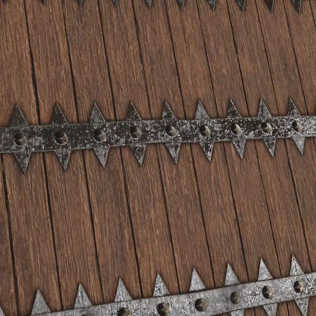 This is a PBR Texture Pack of Spiked Iron-Clad Wood Planks. All the Maps Such as BaseColor / Normal / Roughness / Height / Metallic / Opacity are provided as per Requirement. This material is provided in 2K resolution (If you need High Quality Material 4K / 8K or 16K make sure to contact us). Blender Native file is Provided and a Separate PBR Textures folder is also provided That can be used in any 3D software (3ds Max, Cinema 4D, Maya, game engines like Unreal Engine and Unity, and texture painting software like Substance Painter etc.). You are welcome to visit our profile and explore thousands of PBR Materials And This Material is part of Our Best Product 5000+ PBR Asset Browser You can get that too. https://www.cgtrader.com/3d-models/textures/architectural-textures/5000-pbr-materials This asset features horizontal aged wood planks reinforced by a central vertical iron band. The metal strip is uniquely designed with jagged, triangular spikes along its edges and secured with heavy rounded rivets. The combination of weathered timber and aggressive ironwork creates a formidable, defensive aesthetic. It is a perfect choice for orcish or barbarian-themed fortifications, spiked trap doors, reinforced war wagons, and dark fantasy environmental props.