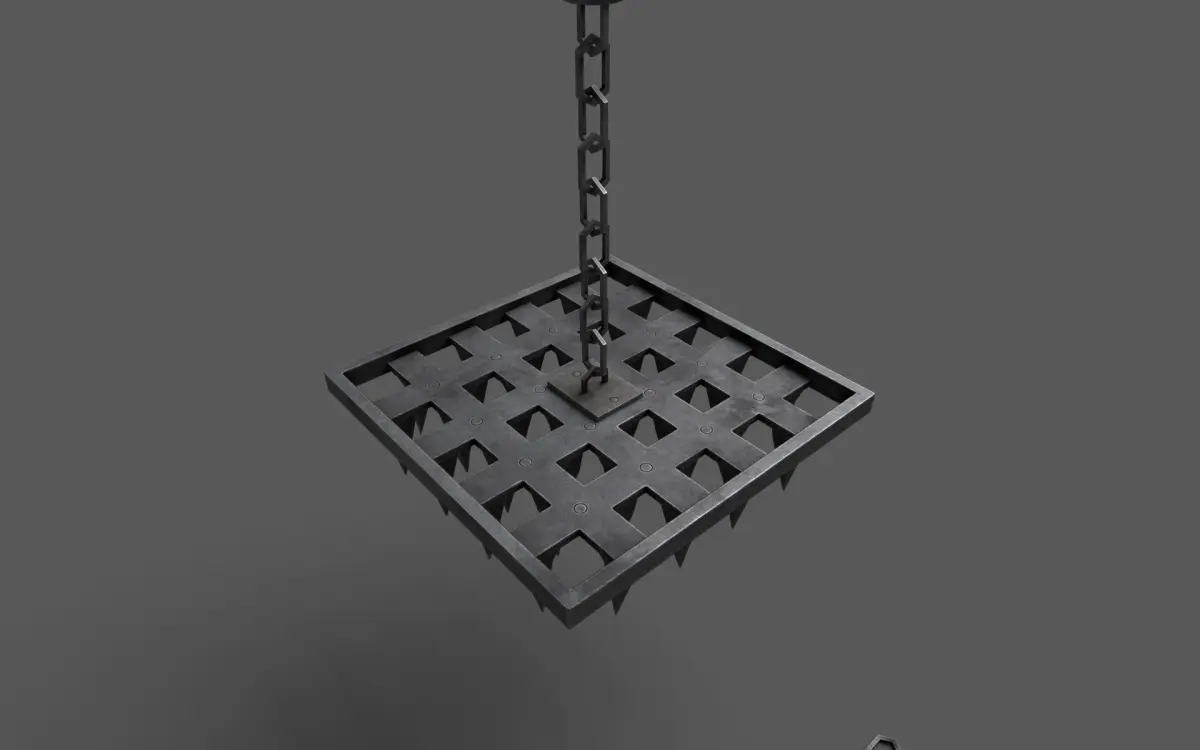 Presented to your attention is a 3d model of a metal lattice with spikes, as planned, this is a trap falling from the ceiling, this model is suitable for almost any project in which various deadly obstacles can be used. The model is low poly and optimized for game engines, the models are made separately from each other for impact animation. Attention animation is not included.