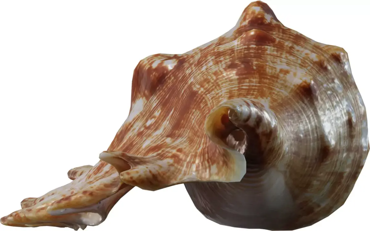 This asset is a detailed 3D model of a large spiky conch‑style seashell with sweeping flared ribs and elongated horn‑like projections, ideal for beach scenes, underwater environments, and close‑up prop shots. The shell surface features layered ridges and subtle bumps that catch light nicely, while the interior spiral mouth provides a strong focal point for macro renders. High‑resolution PBR textures reproduce the glossy enamel finish with warm orange‑brown striping over a pale cream base, giving believable specular highlights and color variation. The topology is clean and evenly distributed, suitable for both offline rendering and real‑time engines such as Unreal or Unity. UVs are fully unwrapped with consistent texel density, making it easy to adjust materials or create variations in major DCC tools. This seashell works well as a collectible prop, decorative scatter object, or hero element in coastal and nautical scenes.