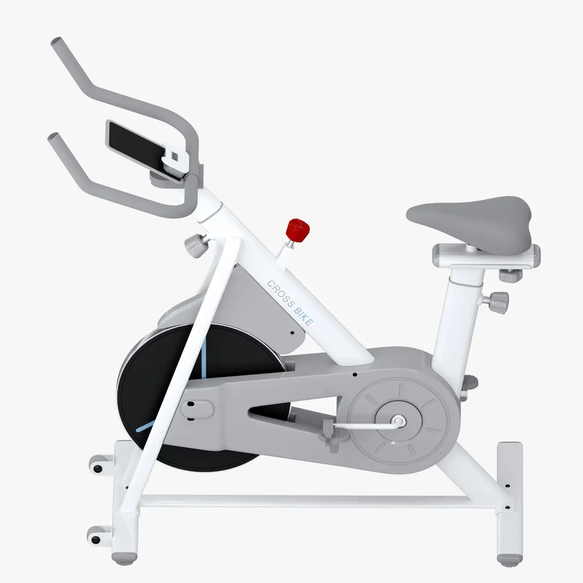 This is a spinbike model called cross-x.The characteristic of this model is that it consists of bright colors and colors that serve as points. And it has the advantage of being good visually because of its simple form. Hope you find it useful.
