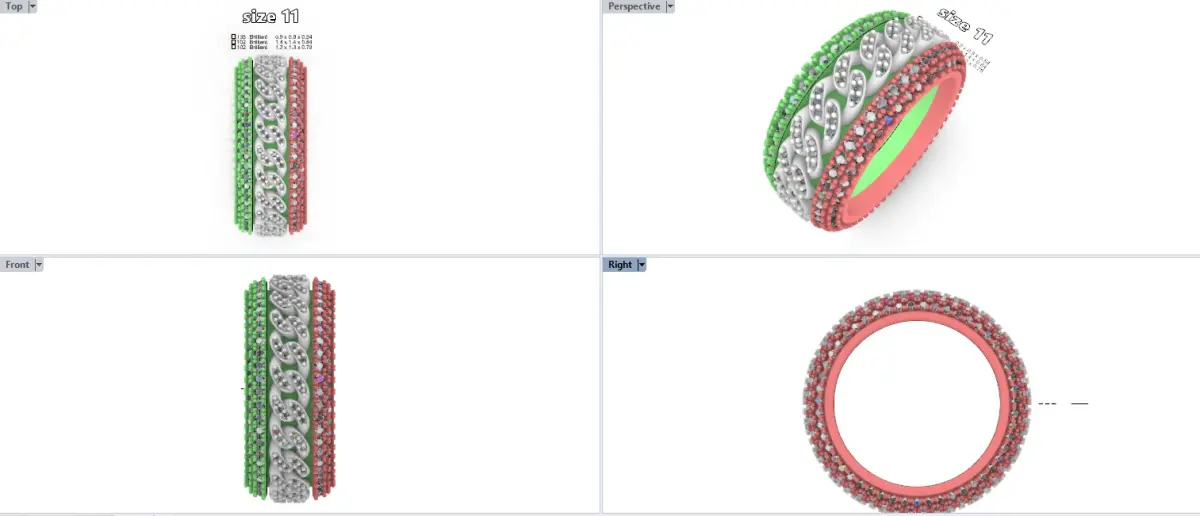 This bundle includes six wide-band models in US sizes 6, 7, 8, 9, 11 and 12, all featuring a smooth, rotating Cuban chain enclosed in pavé–style side bands. Ready to print and cast!