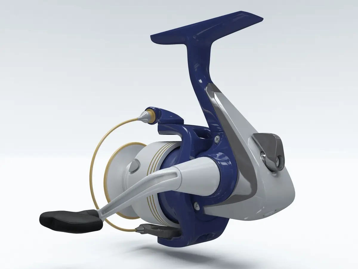 Spinning reels. It is used for fishing. It is based on coil "Daiwa Regal-Xi". Only a four-sided polygons.