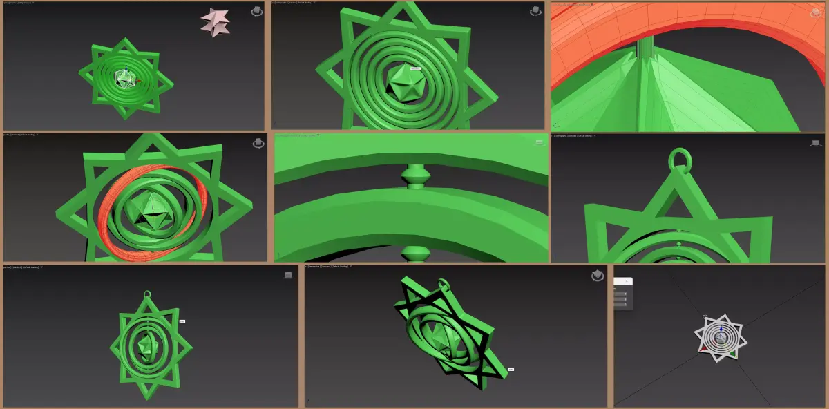 Add a touch of motion and geometric elegance to your holiday display with this Spinning Star Ornament. Designed with precision using 3ds Max, this model features a classic 8-pointed star frame holding a set of concentric rings that rotate freely around a central geometric gem.