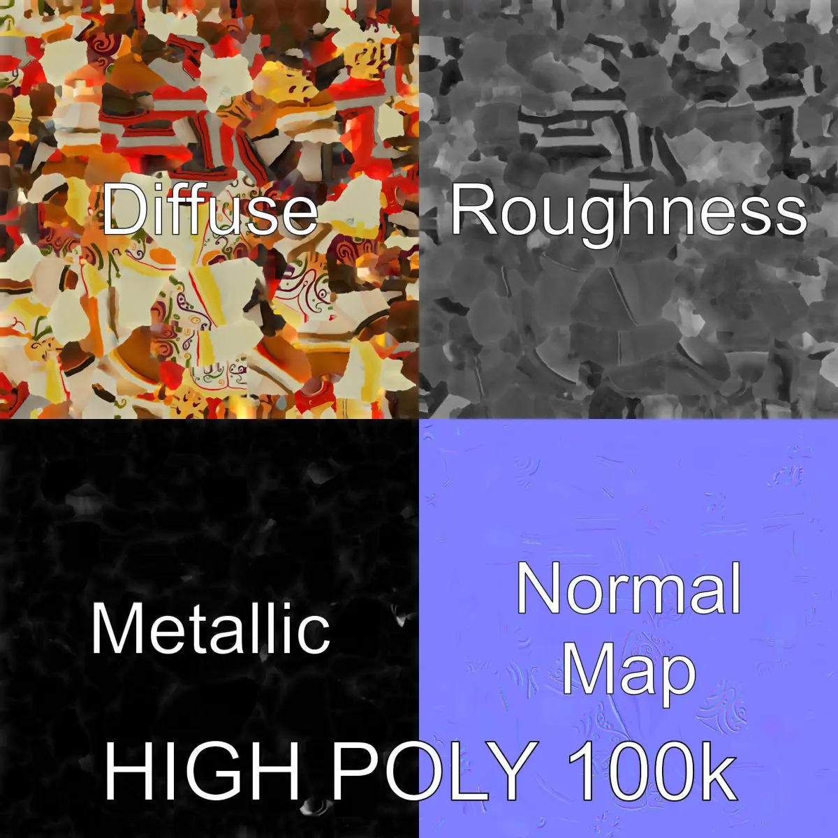 The model's textures are PBR, Diffuse, Normal Map, and reflection/roughness/metallic, which are suitable for any modern rendering engine. All models are accurately unwrapped and have no overlapping UV.