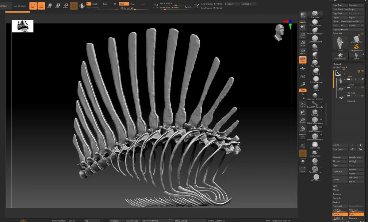 . Spinosaurus 2020 version Rib Set Skeletons. 14.1million corners.