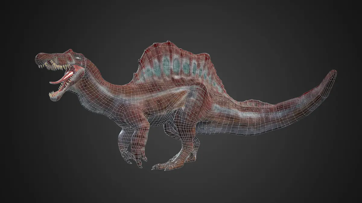 A model of an Spinosaurs Based on the new fossil discoveries (shorter legs, wider tail and that veil form), but with the Jurassic Park 3 Style. This model is good for using in any Dinosaur game or for practicing animation. 11.006 Faces. Sculpeted in Zbrush, Textured in Substance, Rigged and animated in Blender.Rigged and with 2 animations: walking and walking roar. The rig is totally functional and you will be able to create new animations, but its a quite simple rig.There are 2 textures groups, one with the eues, teeth and tongue, and other for all the body and skin.You can change the albedo map texture of the body to look it like the Jurassic Park 3 Spinosaurus or a Green variant of it, so you can choose between those 2 textures. You can contact me if you want a personal texture with other colors for your game. You can visit and follow my instagram @Gomizard_art.as well as an FBX file, theres a Blender file with the model ready to animate.