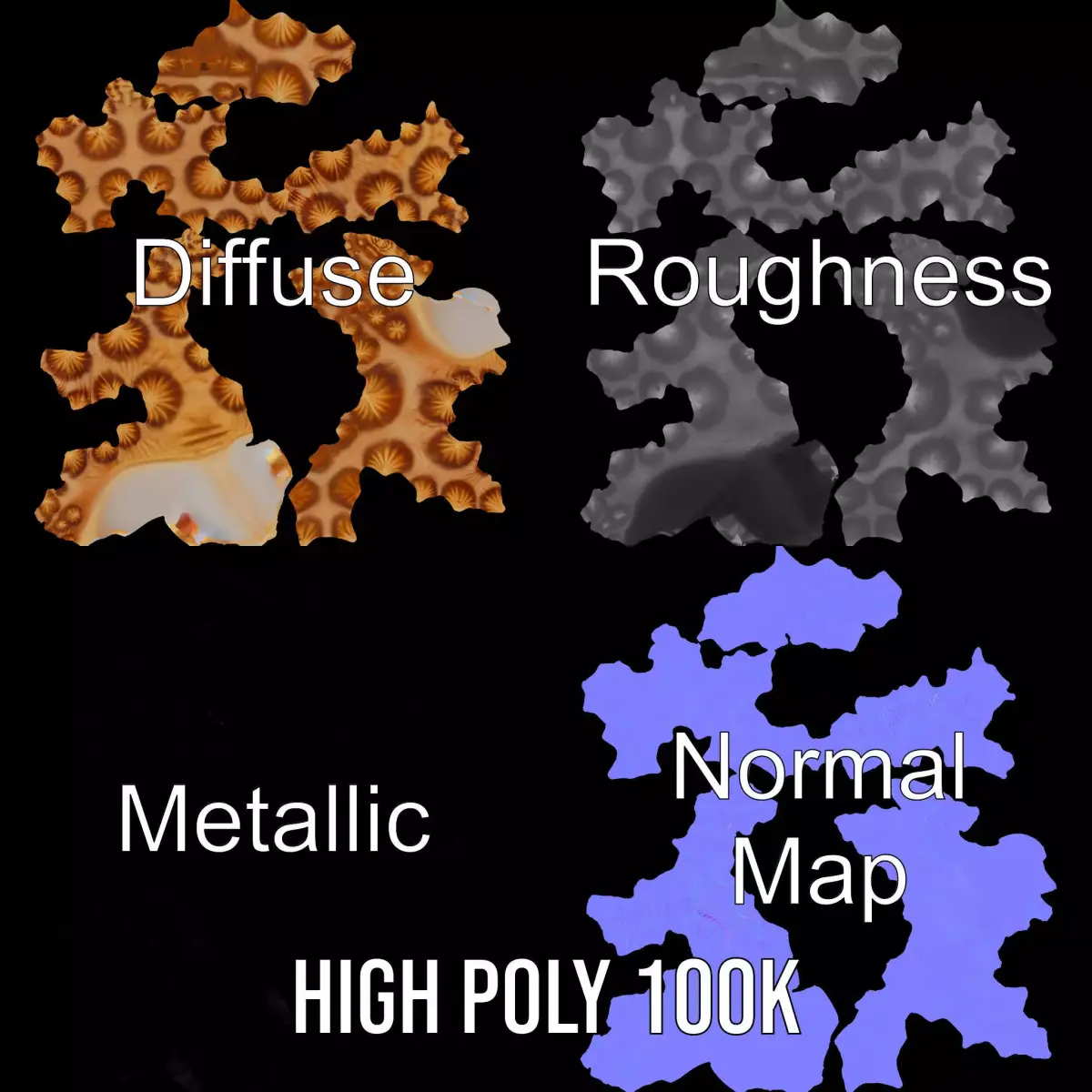 The Spiny Conch Shell model pack offers a highly detailed and realistic representation of a natural seashell. Perfect for use in marine-themed visualizations, educational representations, and decorative applications. Each model has 3 levels of detail: low-poly (1000 triangles for mobile), middle-poly (10,000 triangles for environment), and high-poly (100,000 triangles), which allows for the use of this model in production rendering (such as 3ds Max, Maya, Cinema4D, Blender, Vray/Corona/Cycles), game engines (Unity and Unreal compatible), and interactive presentations, providing a choice of detail based on the LOD System principle. The model's textures are PBR, Diffuse, NormalMap, and reflection/roughness/metallic, which are suitable for any modern rendering engine. All models accurately unwrapped and have no overlapping UV. Textures are 4096*4096 in size. Please like and leave a comment for the model if you enjoyed it.