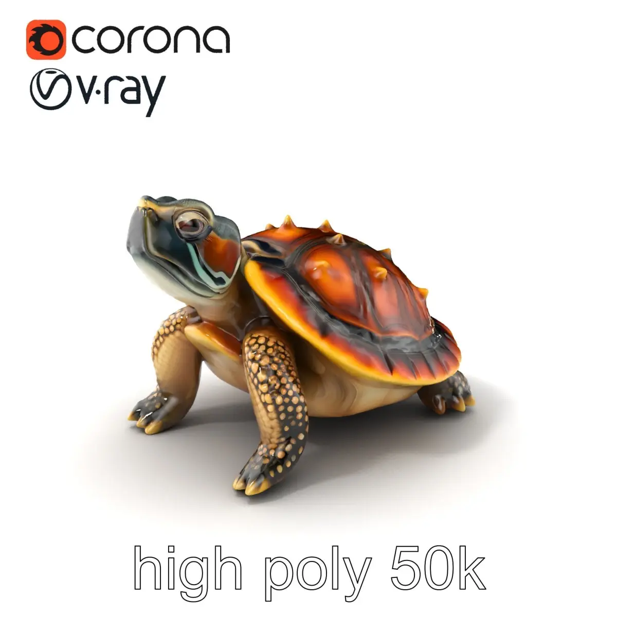 Each model has 3 levels of detail: low-poly, middle-poly, and high-poly, which allows for the use of this model in production rendering (such as 3ds max, Maya, Cinema4d, Blender, Vray/Corona/Cycles and all other), game engines (Unity and Unreal compatible), and interactive presentations, providing a choice of detail based on the LOD System principle. This detailed spiny softshell turtle model is perfect for educational illustrations, nature simulation, and wildlife documentaries. The model's textures are PBR, Diffuse, NormalMap, and reflection/roughness/metallic, which are suitable for any modern rendering engine. All models accurately unwrapped and have no overlapping UV. All textures are 4096*4096 in size. If you like this model, please like and leave a comment!