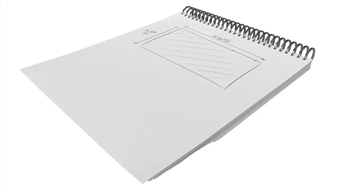 - Sketch Content: The top page features a simple, hand-drawn sketch, resembling a rectangular room or area.