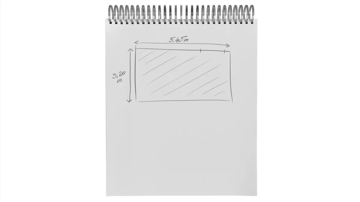 - The sketch is annotated with handwritten dimensions indicating the size of the drawn space: 5.40 m (length) and 3.20 m (width).
