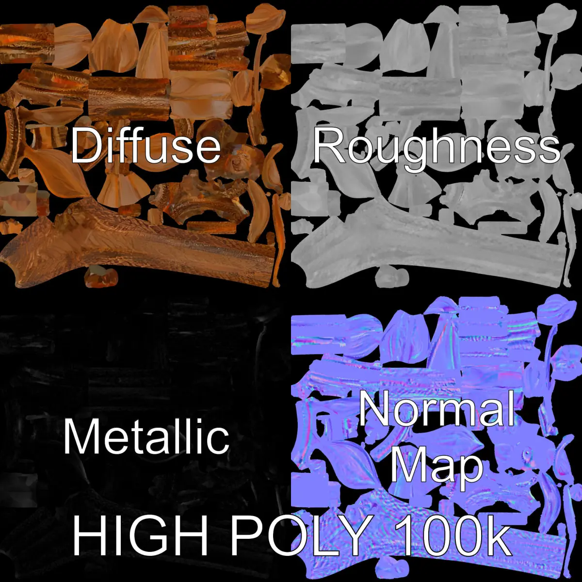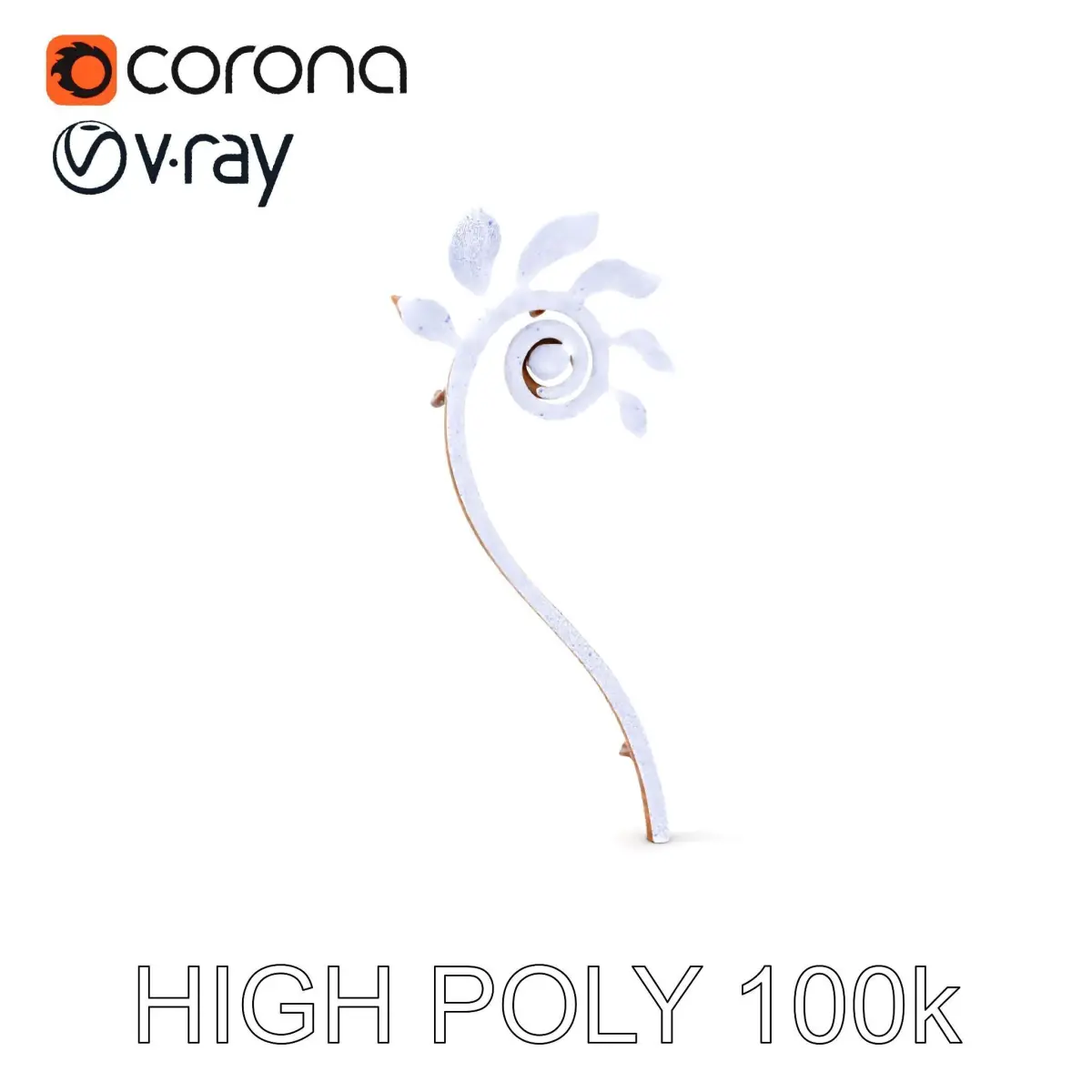 This Spiral Fern Copper Decor model pack includes three levels of detail: low-poly (1000 triangles) for mobile applications, middle-poly (10,000 triangles) suitable for environments, and high-poly (100,000 triangles) for production rendering. Ideal for use in garden design visualizations, architectural renders, and game environments, this model captures the delicate spiral and leaves of a fern crafted in copper. The textures are PBR, Diffuse, NormalMap, and reflection/roughness/metallic, supporting any modern rendering engine. Accurately unwrapped with no overlapping UVs, each texture is 4096x4096 in size. The first image is the reference used for creating the 3D model. It is important to carefully evaluate the quality of the model by examining the preview images that display the topology and polygonal mesh. These previews (WIRE and WEB 3D Preview) clearly demonstrate how accurately the model matches the original reference and how well the geometry has been executed.