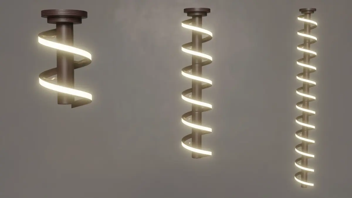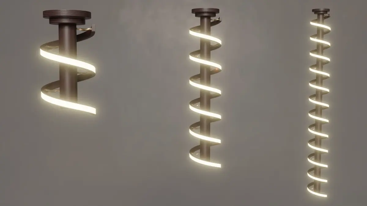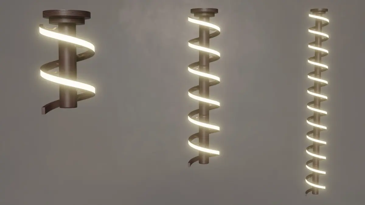 3D model of a low poly spiral lamp. Blender scene file include an array modifier, so it can be easily extended. Lamp can be hanged from the ceiling or standing on the ground.