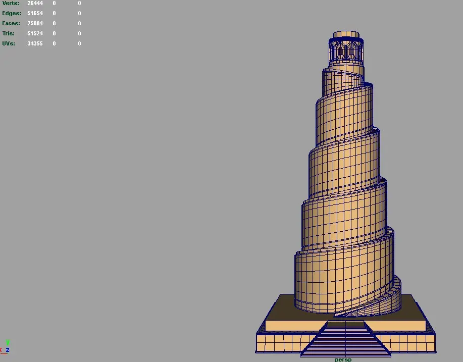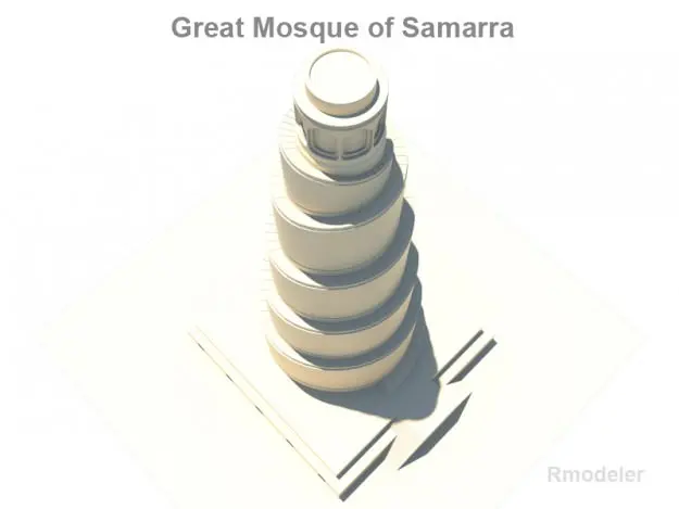 The Great Mosque of Samarra was at one time the largest mosque in the world; its minaret, the Malwiya Tower, is a vast spiralling cone 52 meters high and 33 meters wide with a spiral ramp.