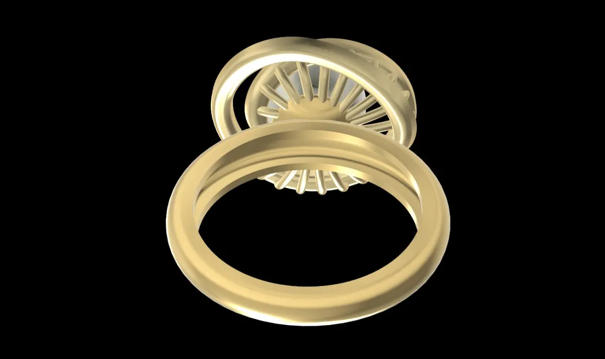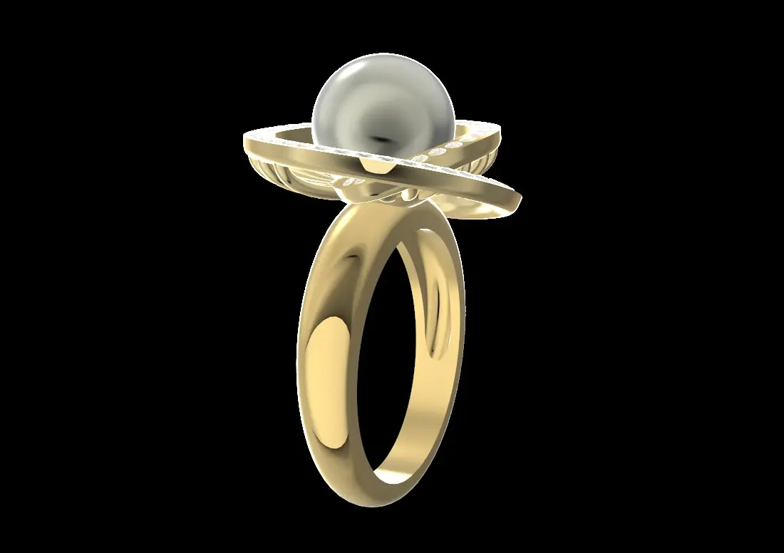 spiral ring surrounderd by gems with a 10mm pearl in the middle. the weight in each material is: