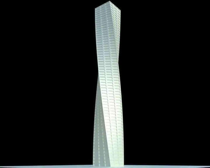3d model of a twisted building , modeled in blender and rendered in blender cyclesready for 3d printing , clean model geometry the buliding has 60 floor , angle of rotation between the frist floor and the last one is 90 degree.there is 2 diferent builidngs , the first form has a roughly reactangular floor design , the second one has 4 wing star shape and the floor area decrease gradually while we go up .there is a flat and a smooth (subdiviosn ) version for each form .