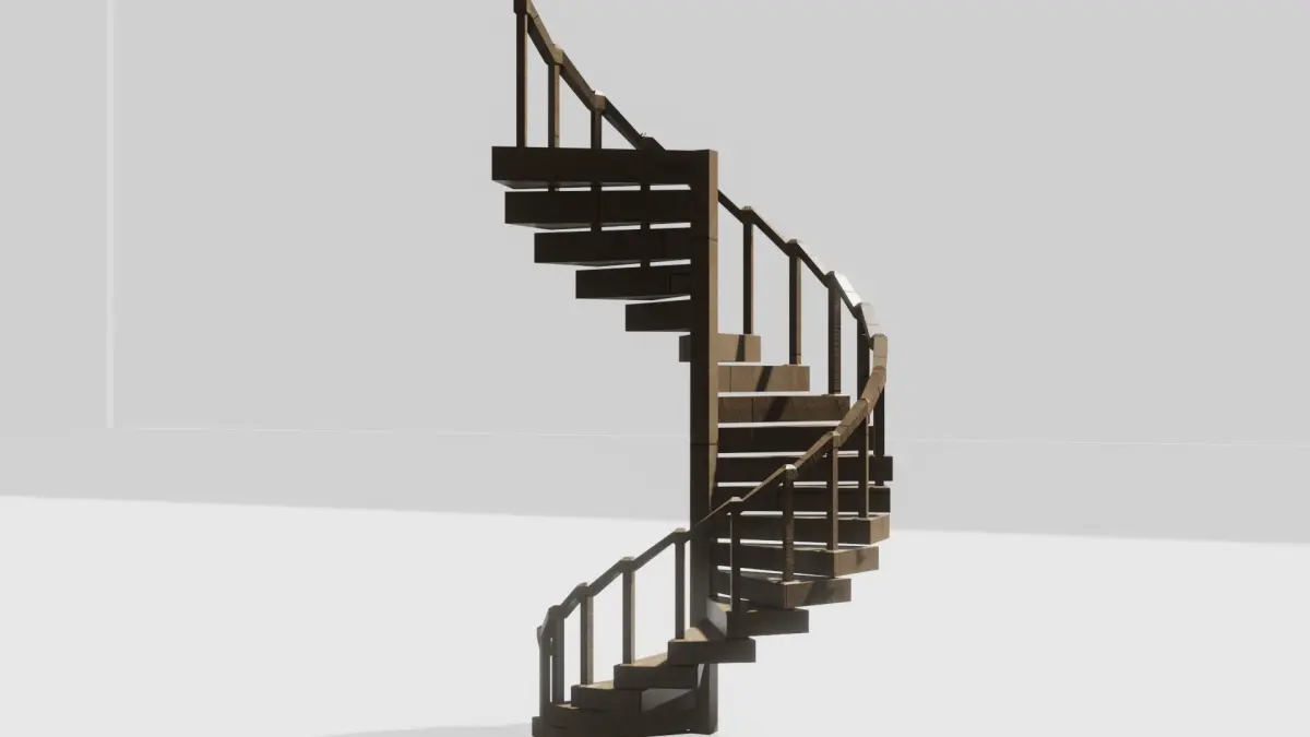 Ideal for your interior scenes this contemporary modern spiral staircase in wood is detailed enough for foreground or closeups.