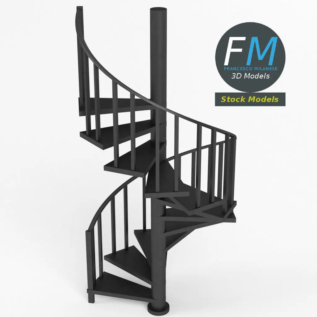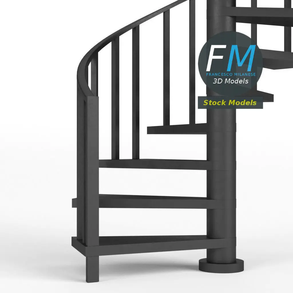 Spiral staircase 3D Model. Production-ready 3D Model, with PBR materials, textures, non overlapping UV Layout map provided in the package.