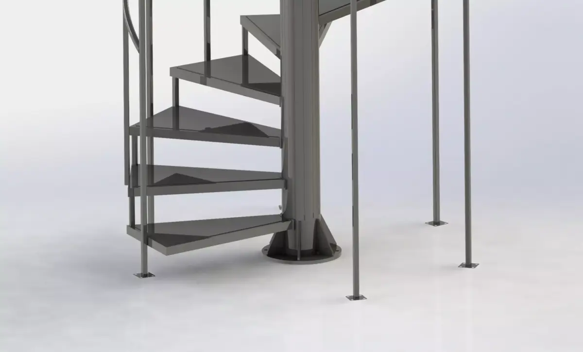 Spiral staircaseEasy to manufacture10 meter height90 cm stepExtended sheet metal step