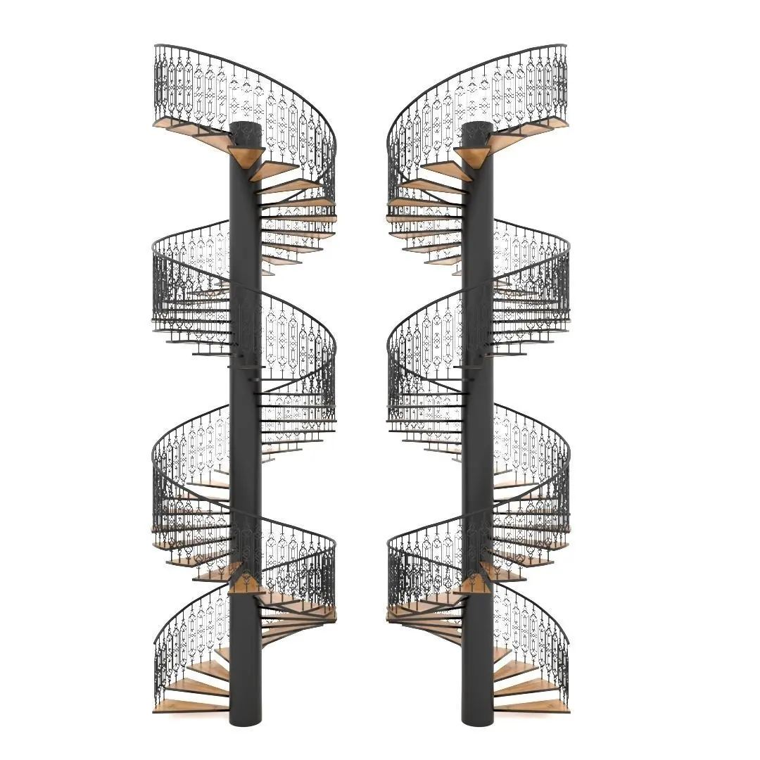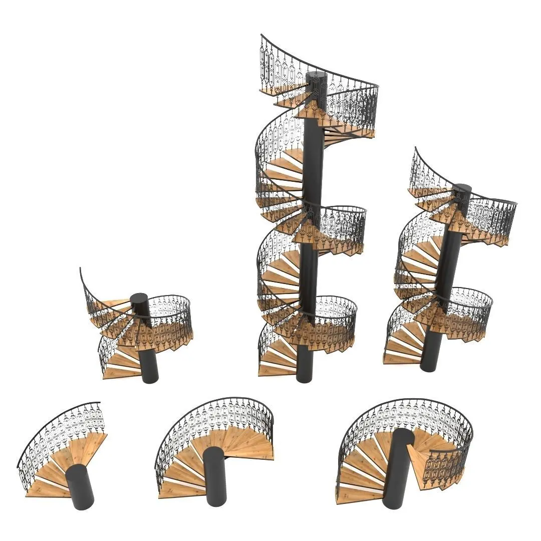 • GeneralHigh detailed symmetrical spiral stairs. 6 different angles (90°,180°, 270°, 360°, 720°, 1080°)You can develop your own stairs. Only the steps count is fixed but you can clone them.It is ready to use, just put it into your scene.