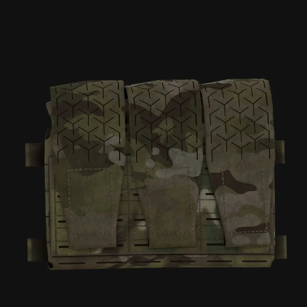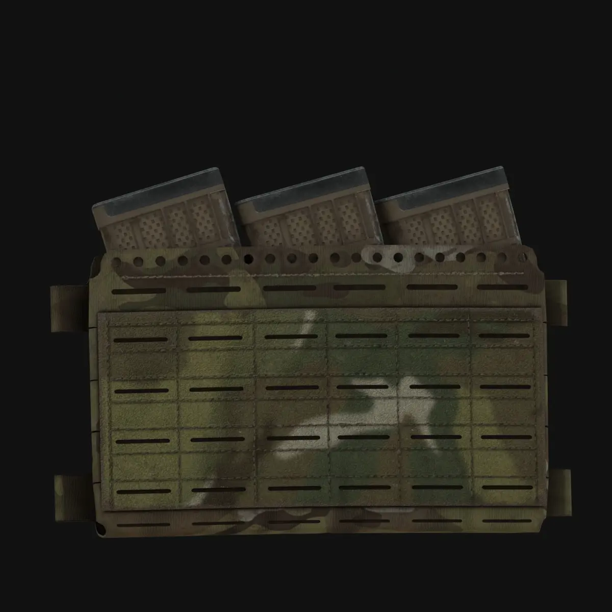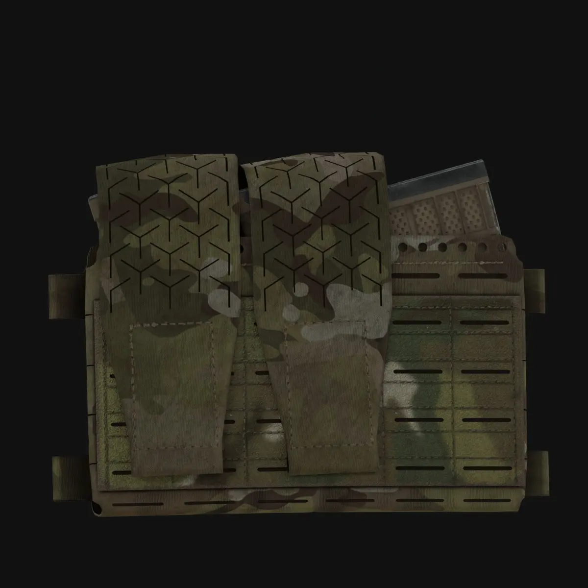 The Micro Fight Chassis MkV is a small and lightweight chassis that can be used as either a standalone magazine placard on a plate carrier, or the central hub for a chest rig when other Spiritus Systems components are used. The MkV is a single cell placard-style chassis that is built with all-new materials and manufacturing processes.