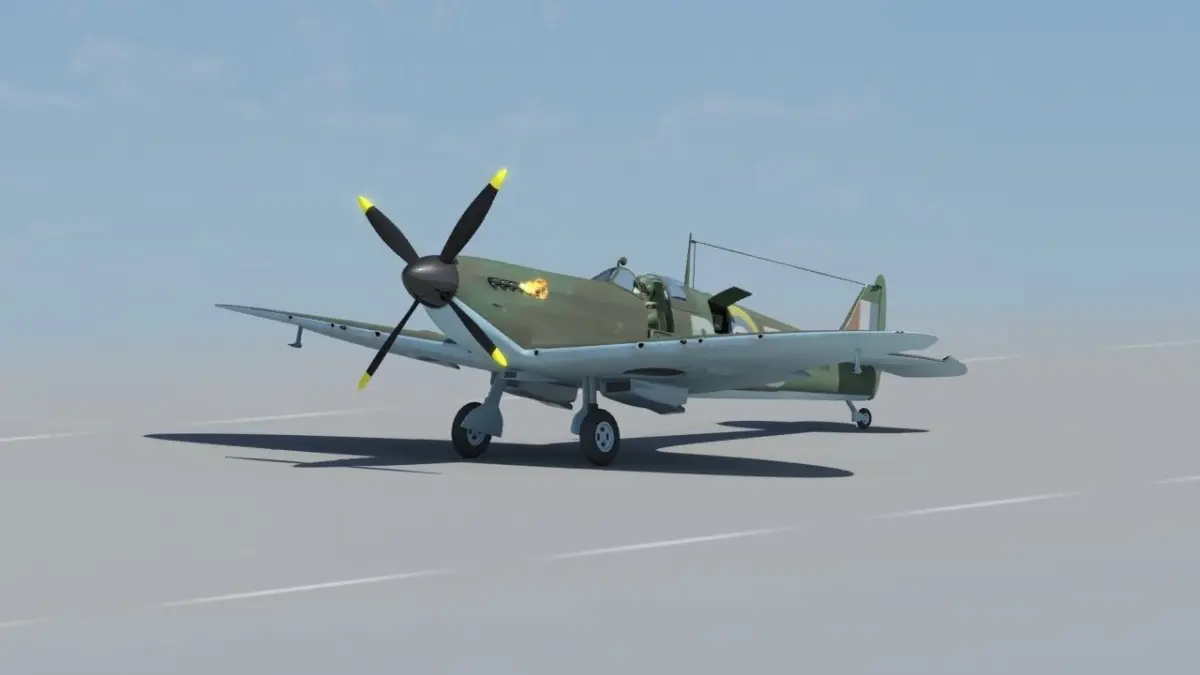This model is rigged and animated with moving flaps, ailerons, rudder, landing gear, prop, radio hatch, canopy and access hatchThe scene consists of a quick twenty second animation of the startup (with backfires), takeoff and flight (with some gunfire) of the Spitfire. I also included maps for the prop blur, exhaust fire and gunshots.