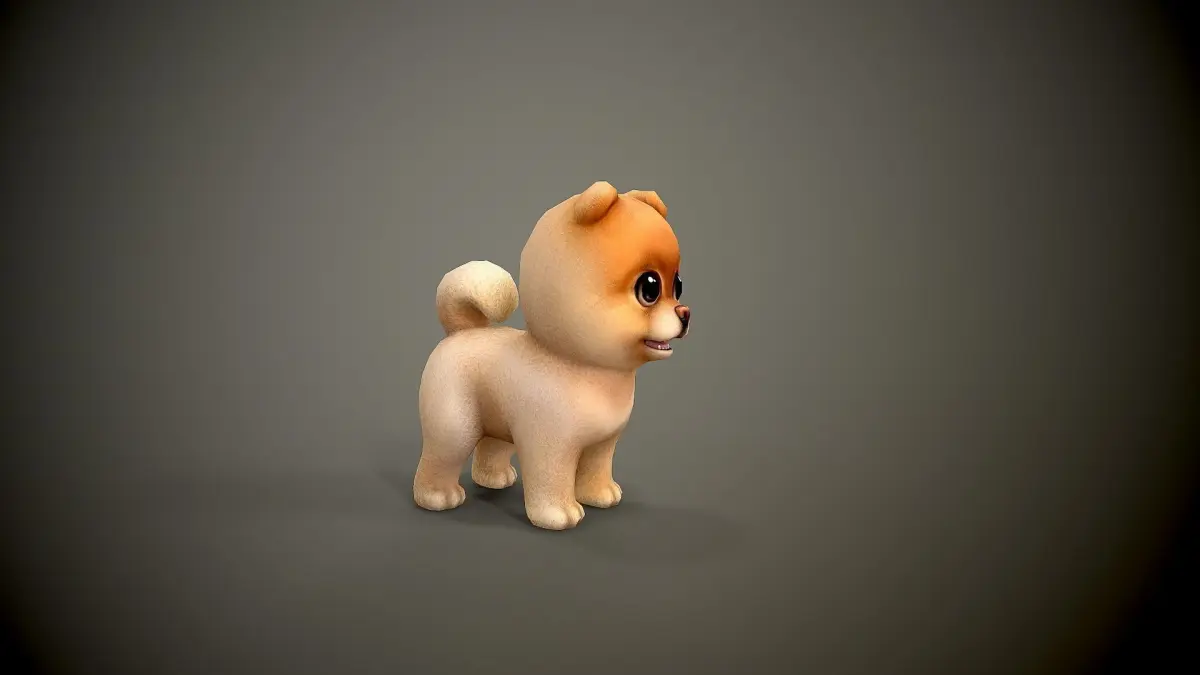 Spitz cartoon dog with big eyes Low-poly 3D model