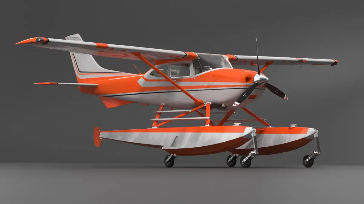 Splash Seaplane Floats Orange is a 3d model of type of seaplane designed for operations that involve taking off and landing on water.