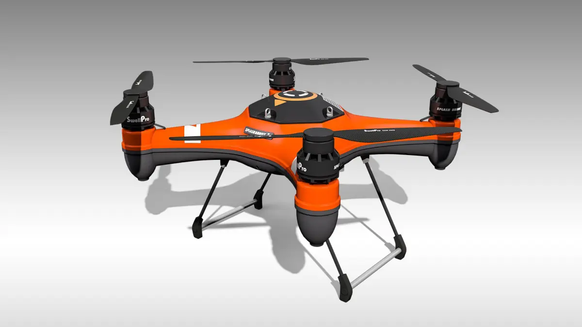 Detailed 3D model of the SplashDrone 3+ Base Platform, modeled and rendered in Cinema 4D. The model was created using approximate real world dimensions.