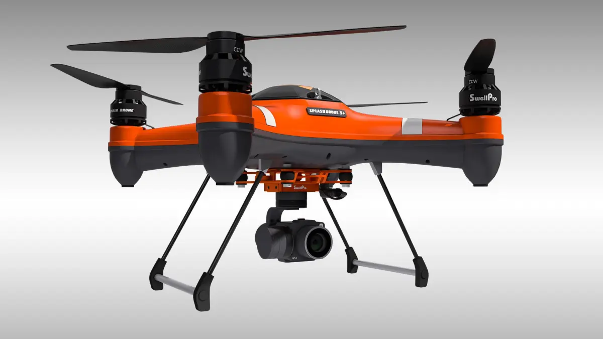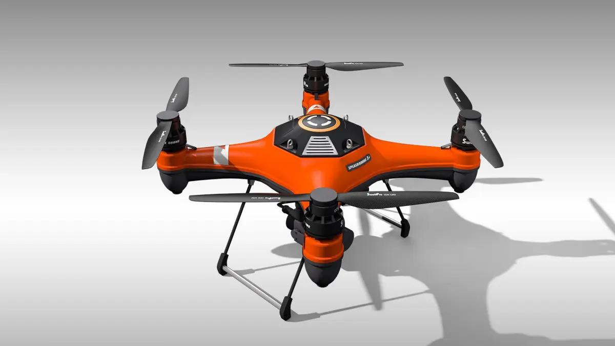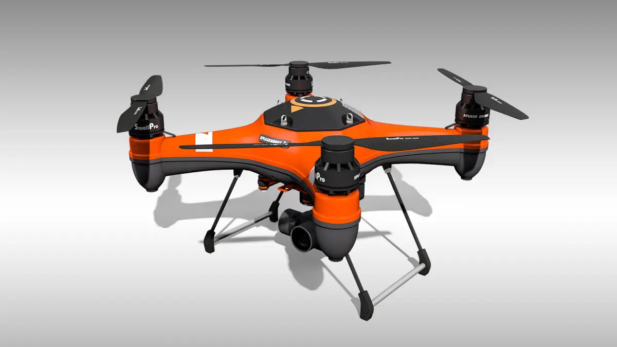 Detailed 3D model of the SplashDrone 3+ with a gimbal camera, modeled and rendered in Cinema 4D. The model was created using approximate real world dimensions.