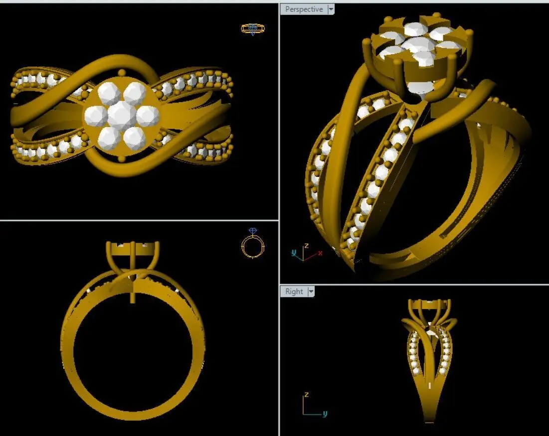 Home Catalog Split Shank Floral Cluster Engagement Ring in Yellow Gold 3D print model