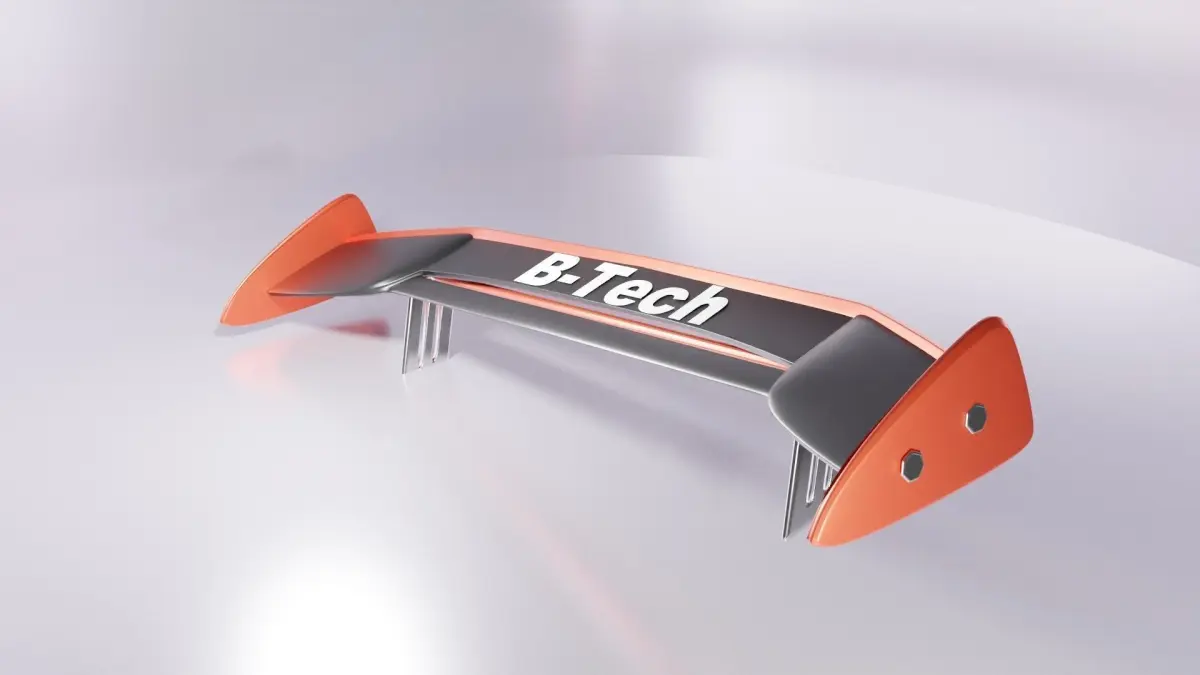 the model is a racing car wing.includes formats (.obj, .fbx, .stl, .ply + materials)the object is composed of several parts, re-editable (including the B-tech brand writing)mid-poly is the object with a subdivision of faces