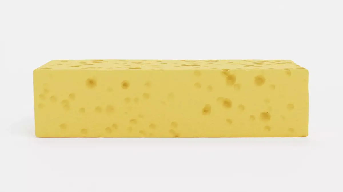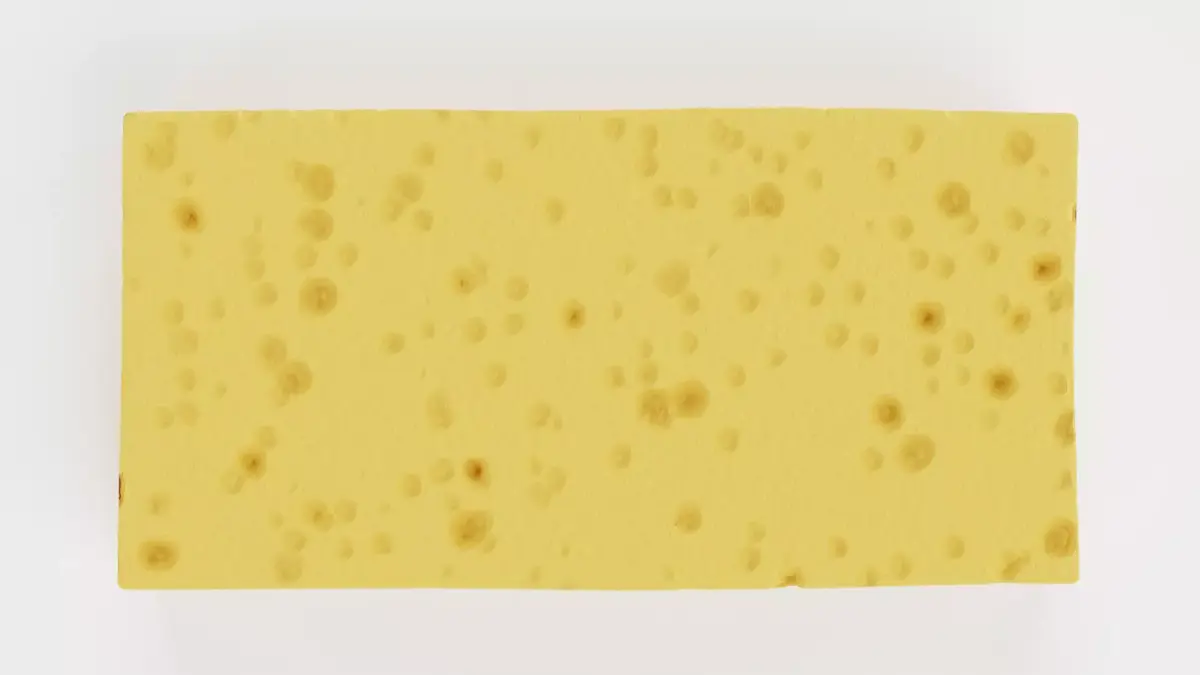 - Rectangular cellulose sponge with visible pore detailing