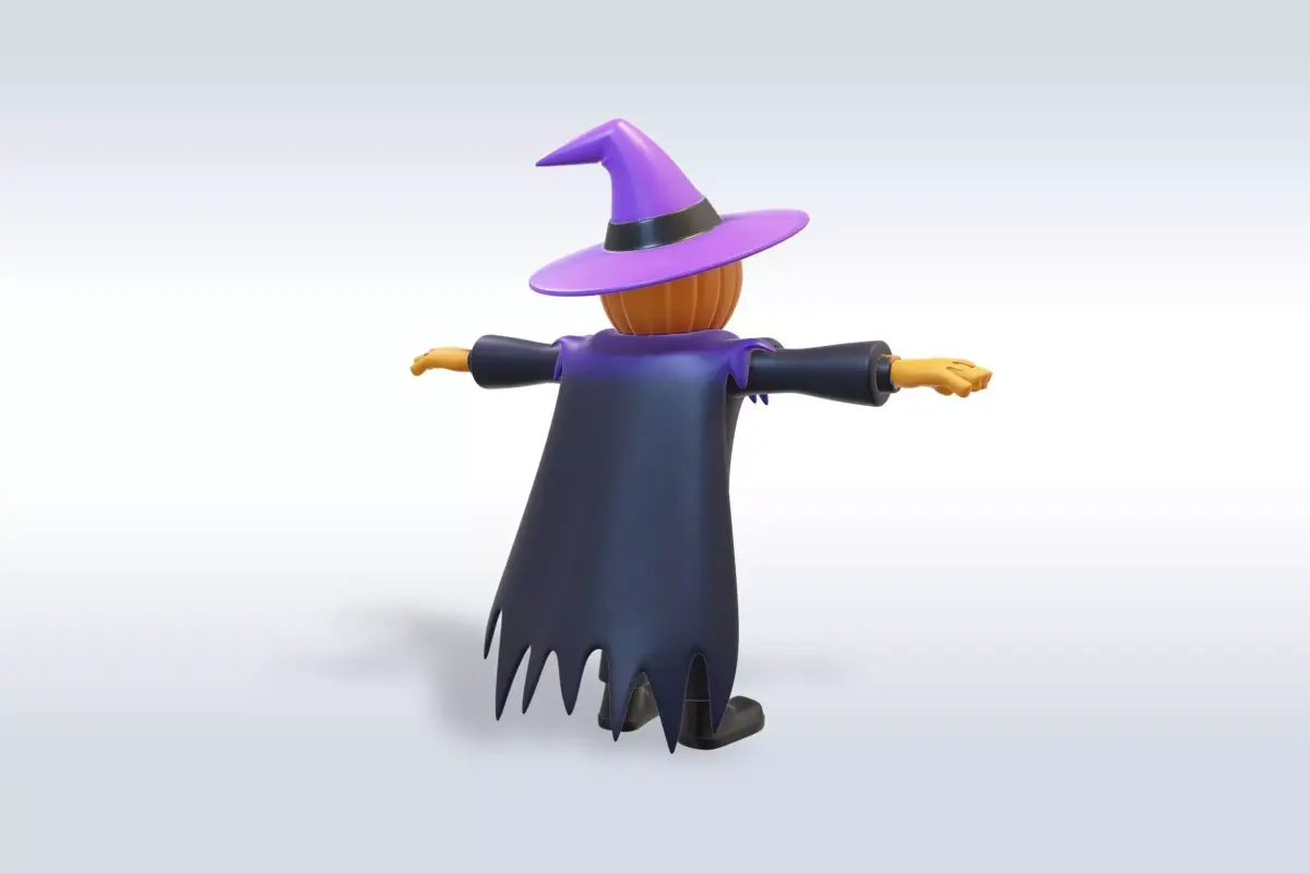 Introducing a captivating 3D model of a spooky witch character, perfect for animation, video games, or visual storytelling. This model is designed with high attention to detail, featuring a vibrant and playful aesthetic that captures the essence of a charming witch.